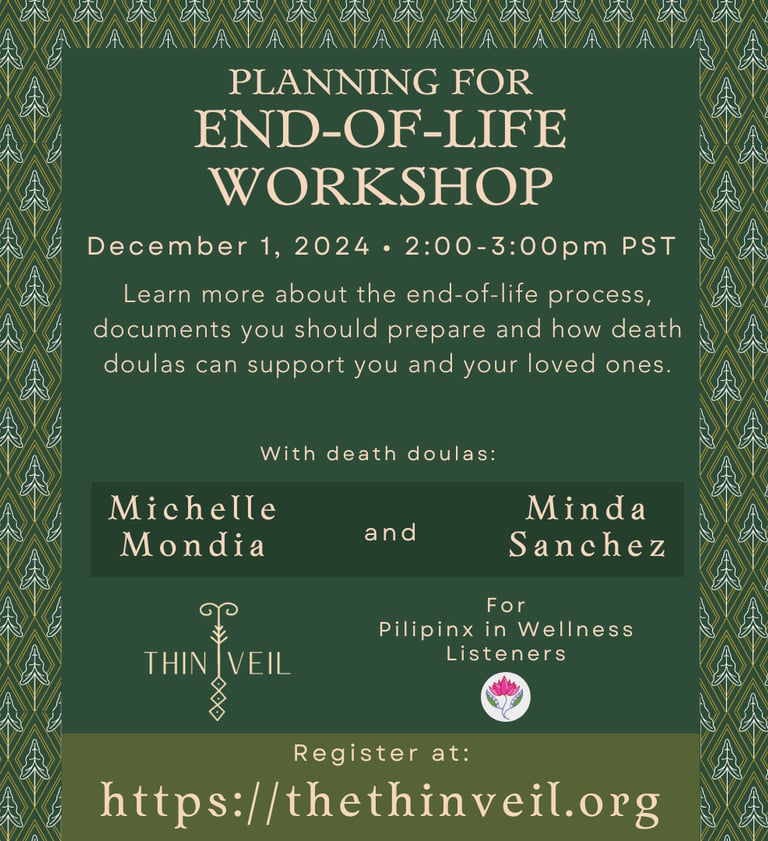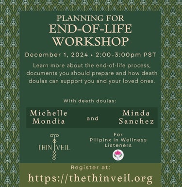 Register for the End-of-Life planning workshop with death doulas Michelle Mondia of the Thin Veil and Minda Sanchez.